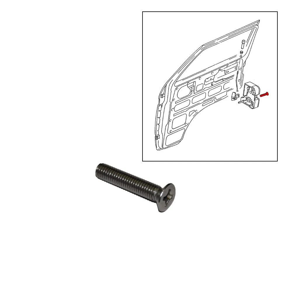Artikeleigenschaften & FahrzeugzugehörigkeitVW Bus T2 T3 alle Modelle auch Syncro 07/79-07/92 VW Bus T4 alle Modelle mit Flügeltüren 07/90-04/03 Vergleichsnummer N 033 188 1 Einbauort T3 Türschloss Fahrer- & Beifahrertür Einbauort T4 Türschloss Flügeltüren Material Edelstahl Besonderheit Original Qualität Lieferumfang 1 Senkschraube