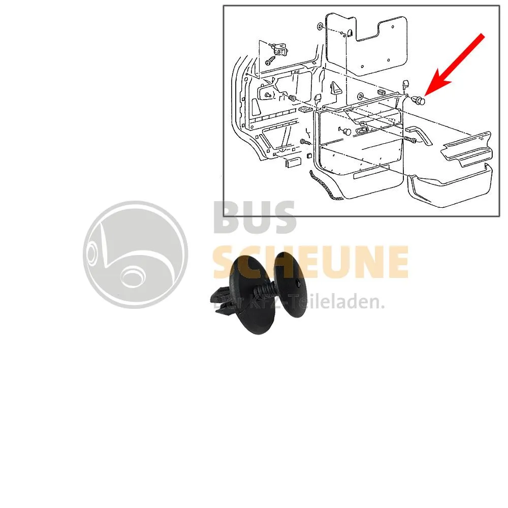 Artikeleigenschaften & FahrzeugzugehörigkeitVW Bus T4 alle Modelle auch Syncro 01/96-04/03 Vergleichsnummer 701 867 299 E Einbauort Türverkleidung links oder rechts Lochkreis-Ø 6 mm Material Kunststoff Farbe schwarz Besonderheit Original Qualität Lieferumfang 1 Clip
